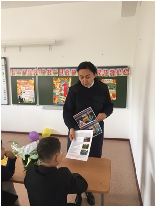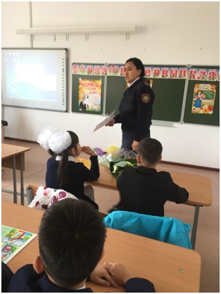 04.09.2019УИП ОЮП ОМПС УП района «Алматы» г.Нур-Султан капитан полиции Каримова А.А. в рамках ОПМ «Внимание дети!» провела лекции с учащимися начальных классов по профилактике ПДД и детского травматизма.